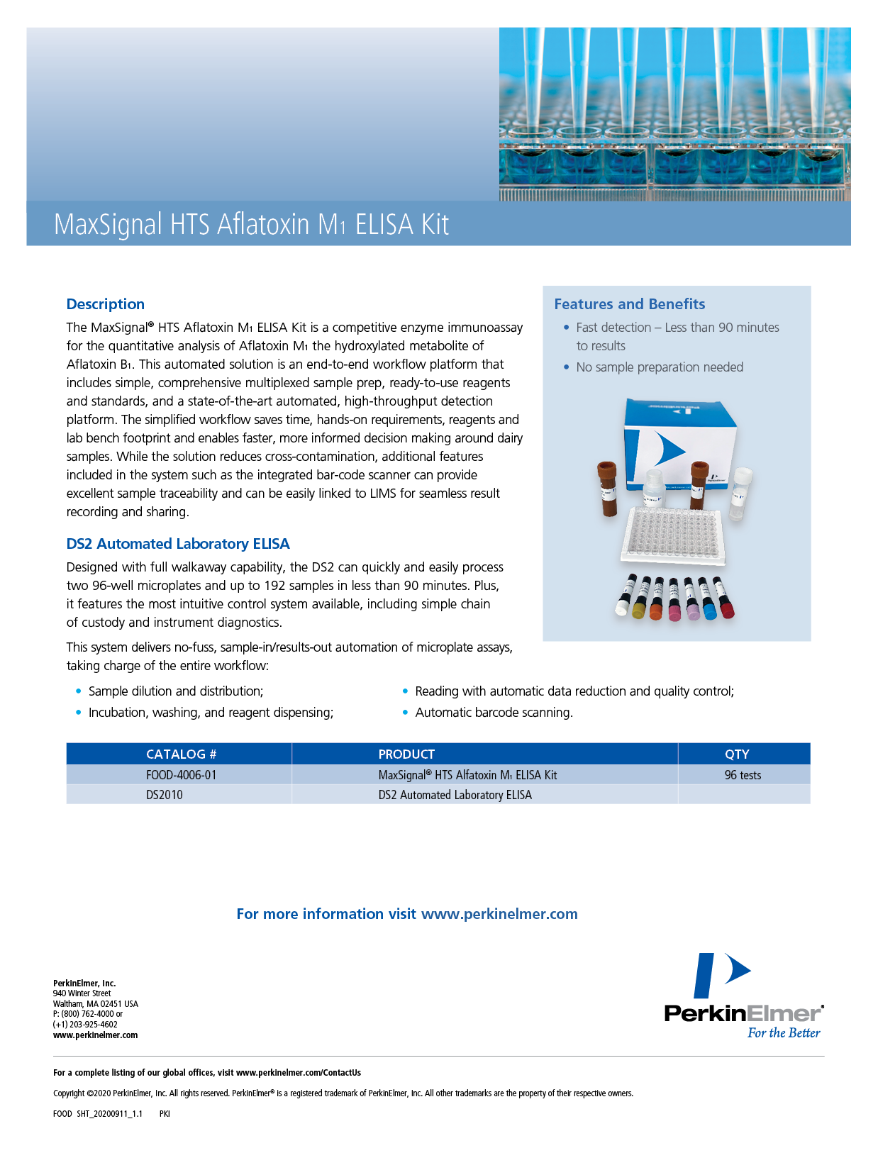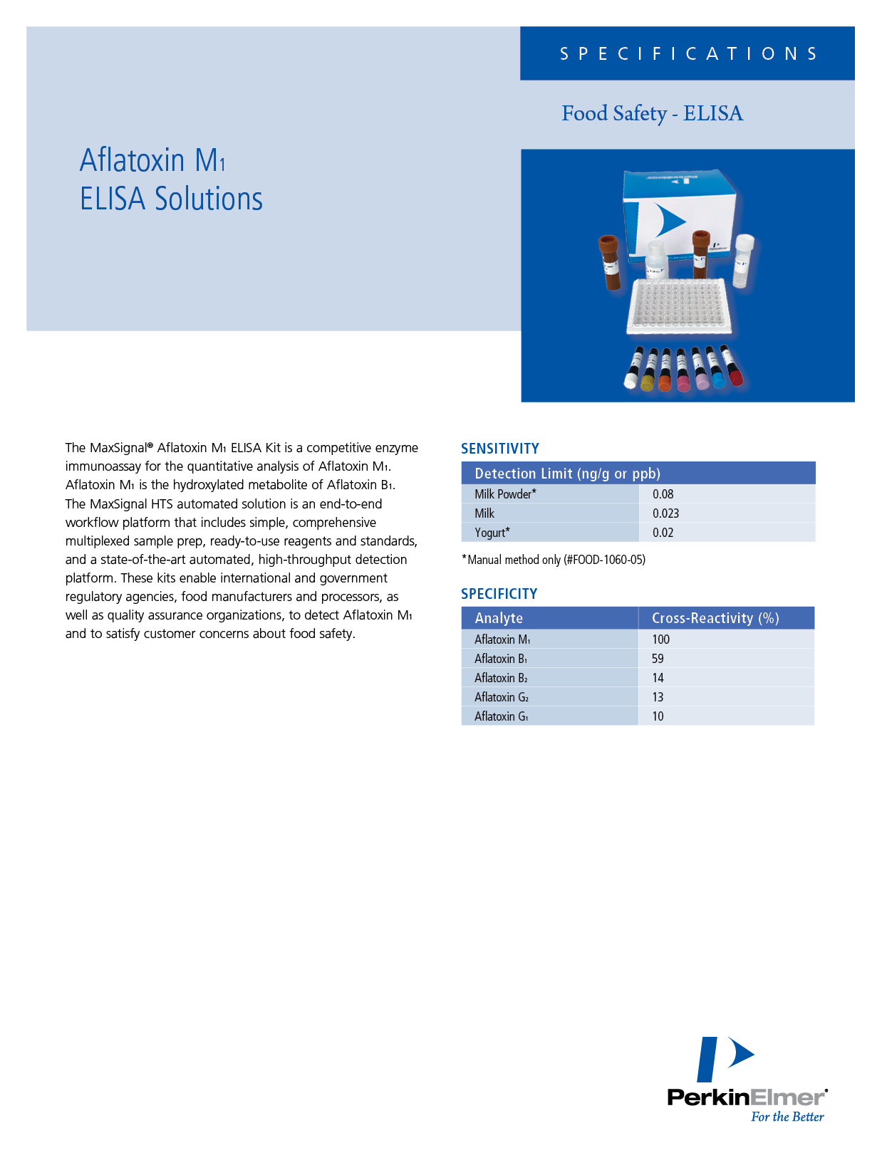 Launch campaign for Aflatoxin M1 test kits for dairy products. Collateral includes brochure, app note, sell sheet, spec sheet, and social media.